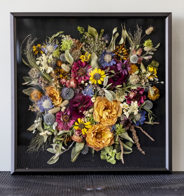 About Shadow Boxes: Our shadow boxes are custom made so that we can provide extra depth to display your beautiful florals as close to their original size/height as possible. It also lets us add all the little detail flowers and greens at different depths creating a wonderful piece of art.